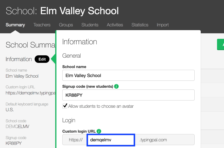 - Edit the subdomain of the school’s custom URL.