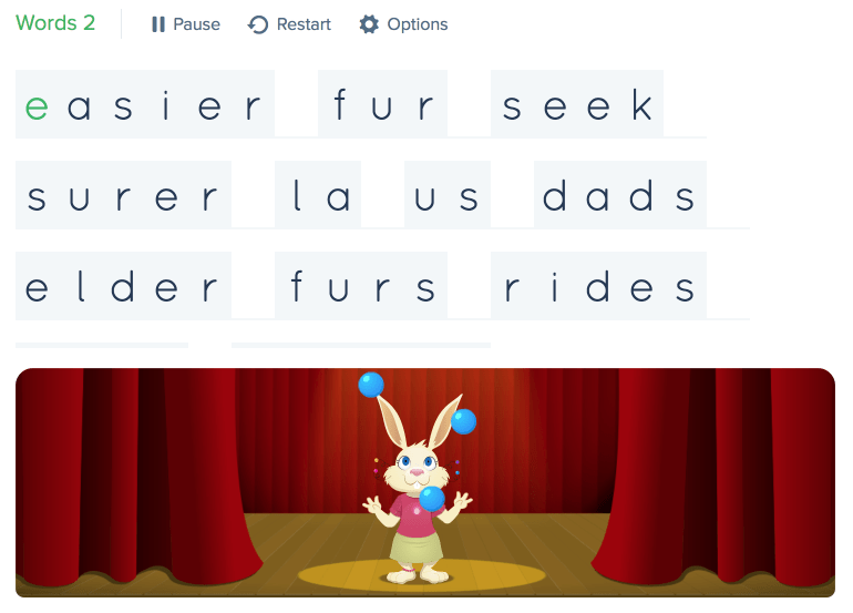 Typing Pal encourages students to look at the screen while they type. One way of getting them to do this is with the help of an animation panel on the screen that features entertaining animations or a keyboard viewer.