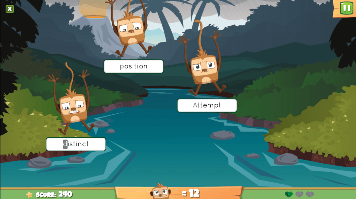 Typing Pal features three games so learners of all abilities can have fun while practicing their technique. As users play through them in order, the number of keys engaged increases, as does the level of complexity: Cosmik Ball involves typing single characters, Monkeys in Jeopardy whole words and Magical Duel phrases. Perfect for keeping players on their toes, they spice things up by offering a change of pace and new character interactions.