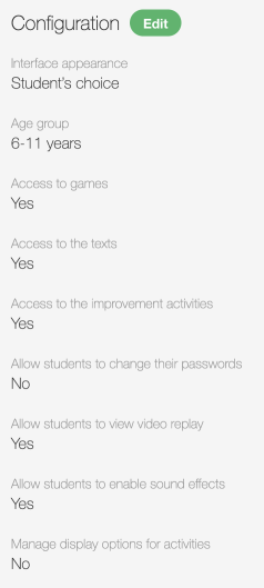 Set or update the unit of measure for speed as well as speed and accuracy targets for students in a group by clicking the Edit button in the Targets panel.