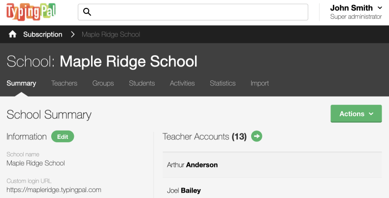 The interface’s general navigation layout is the same for all managers (super administrators, school administrators and teachers).