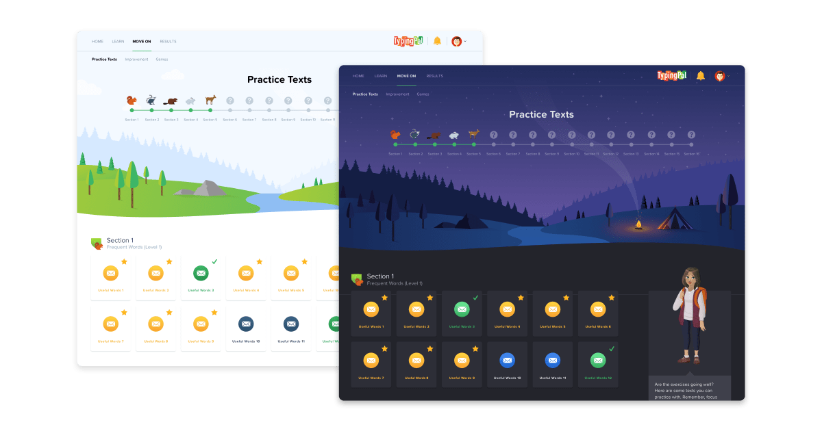 Typing Pal’s training program helps you to integrate these three good practices for online learning. Its online method not only focuses on your keyboarding skills but also provides ergonomic advice and offers a dark mode.