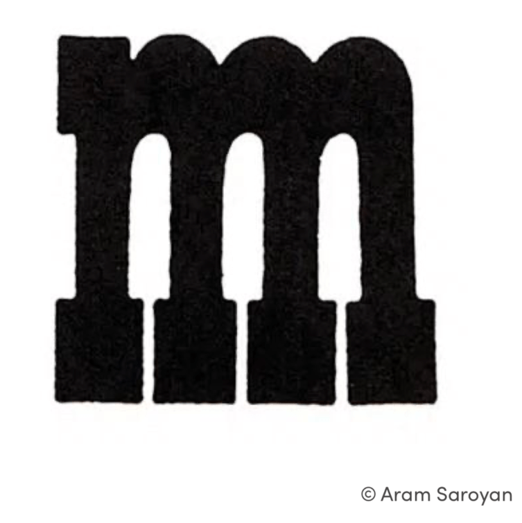 The American writer Aram Saroyan created this one-letter poem that is impossible to type: a four-legged version of the letter “m”!