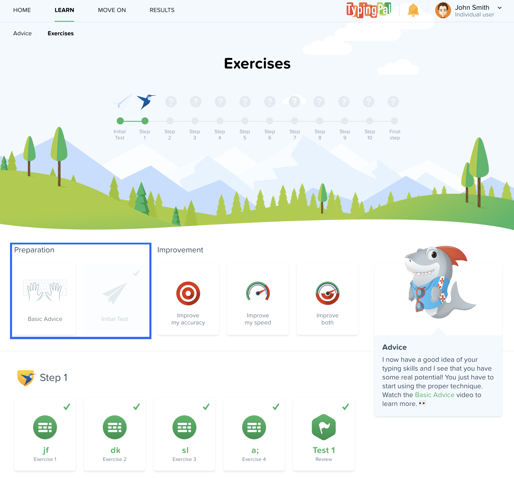 We recommend you complete the test, even if you haven’t yet learned the proper typing technique. Note that the initial test can only be completed once.