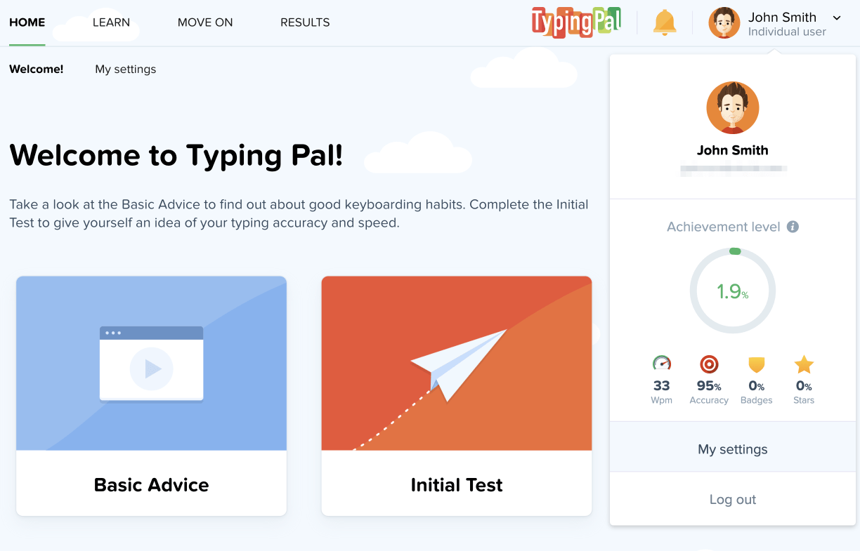 Choose your avatar and update your identification information in the Profile page. To access it, click on your identifier in the top right corner of the window and then choose the My settings option from the menu.