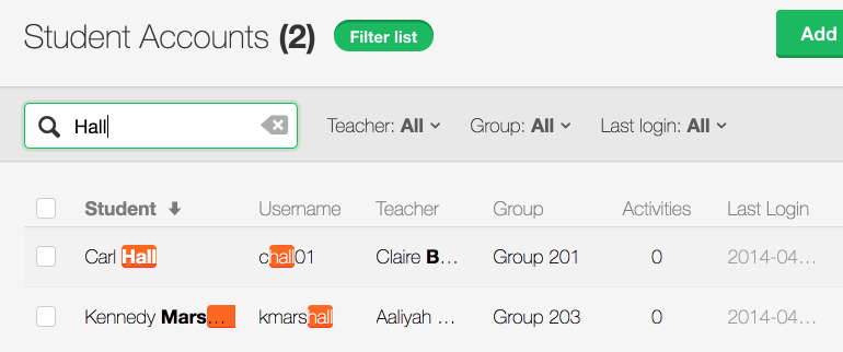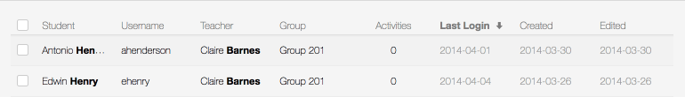 This feature, along with the careful selection of filters, allows you to efficiently select a group of items. For example, filtering student accounts by login date, then sorting them by date of creation will reveal all of the old, unused accounts that should be deleted.