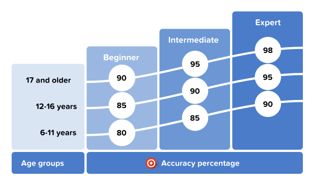 Set reasonable speed and accuracy targets for your baseline skill level. You can always adjust them along the way to increase the challenge or adapt to your own learning curve.